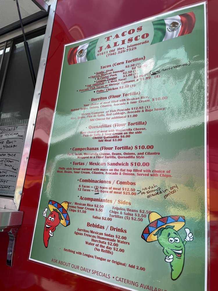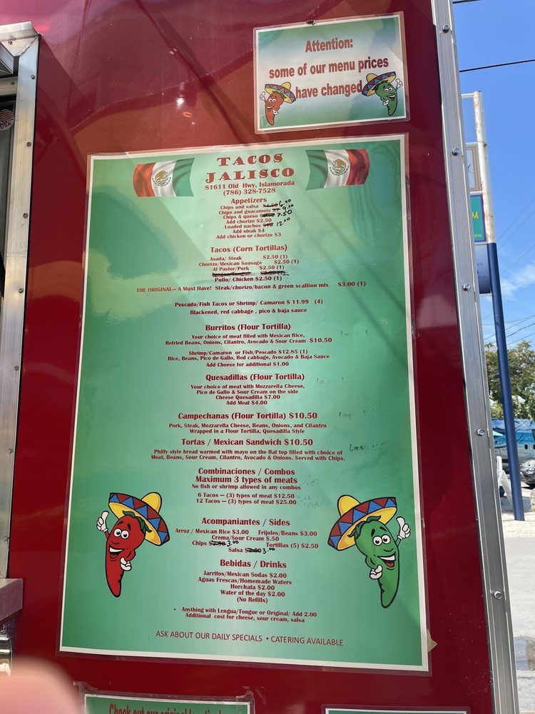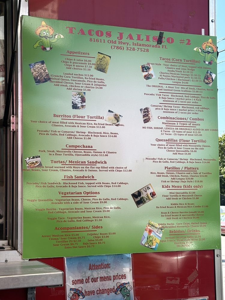 Tacos Jalisco 2 offers a delightful Mexican dining experience in Islamorada, FL. The menu features a variety of appetizers such as Chips & Guacamole, Chips & Queso, and Loaded Nachos, perfect for sharing with friends and family. For a satisfying meal, try their Pescado/Fish Sandwich or opt for one of their delicious vegetarian options like the Veggie Burrito or Veggie Quesadilla. The outdoor seating adds to the ambiance, making it a great spot to enjoy a meal on a sunny day. With street parking available and a kid-friendly atmosphere, Tacos Jalisco 2 is a great choice for anyone looking for a tasty Mexican meal in a classy setting.